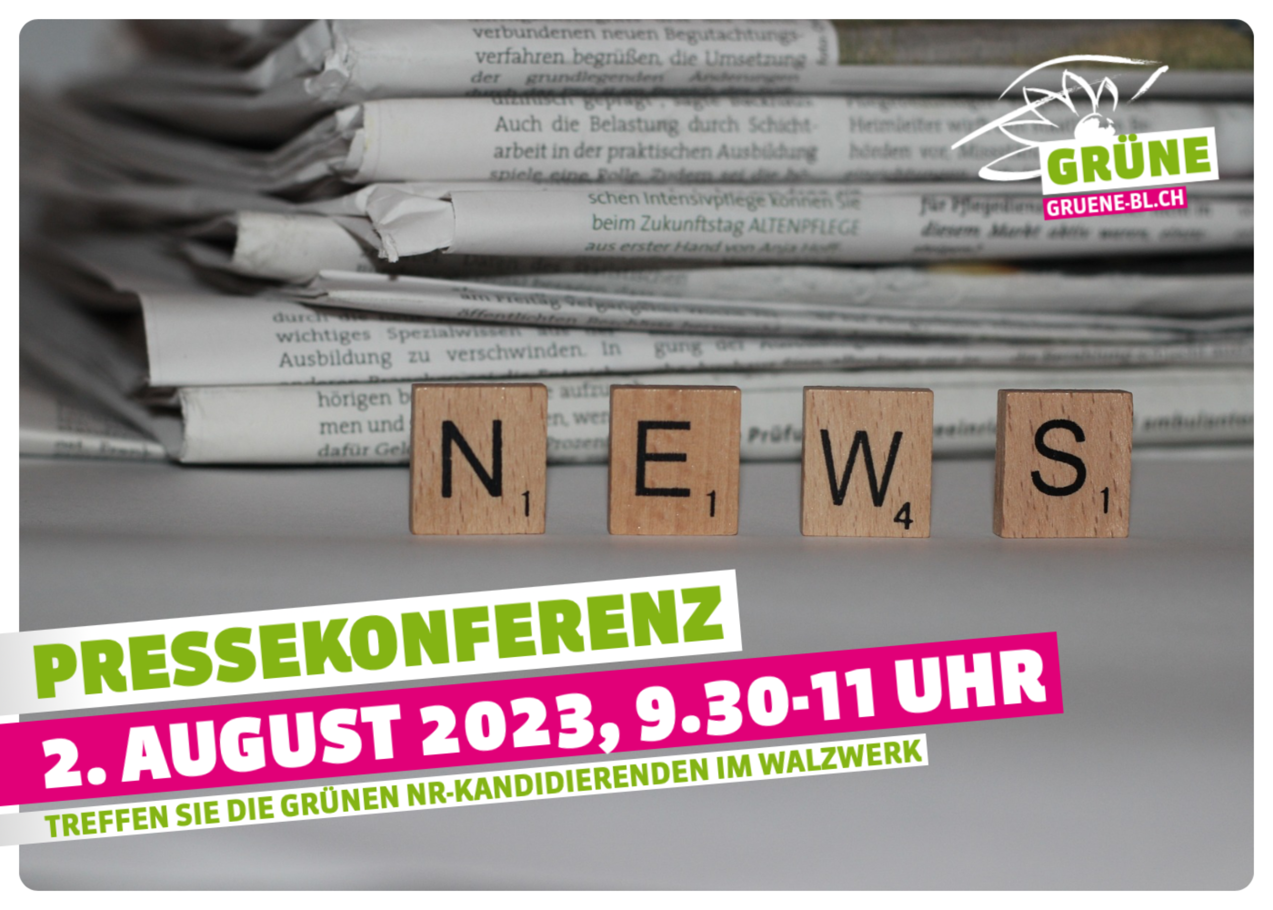 Wir freuen uns, die Medienvertreter*innen am 2. August in Münchenstein begrüssen zu dürfen. Um einen Bestätigung der Teilnahme per E-Mail an info@gruene-bl.ch bis zum 28. Juli 2023 wird gebeten. Gerne stellen wir vor Ort eine Medienmappe zur Verfügung.